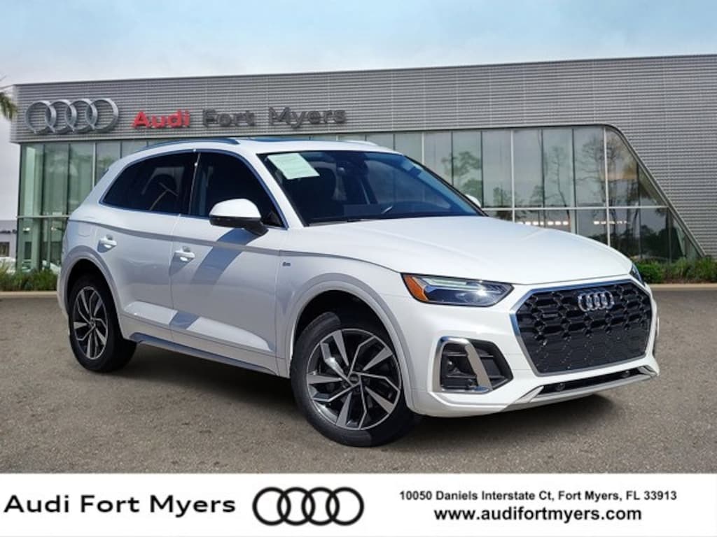 Certified. Ibis White 2023 Audi Q5 45 S line Premium Plus quattro quattro 7-Speed Automatic S tronic 2.0L Turbocharged Black w/Leather Seating Surfaces, ABS brakes, Alloy wheels, Compass, Electronic Stability Control, Front dual zone A/C, Heated door mirrors, Heated front seats, Illuminated entry, Low tire pressure warning, Power Liftgate, Remote keyless entry, Traction control.