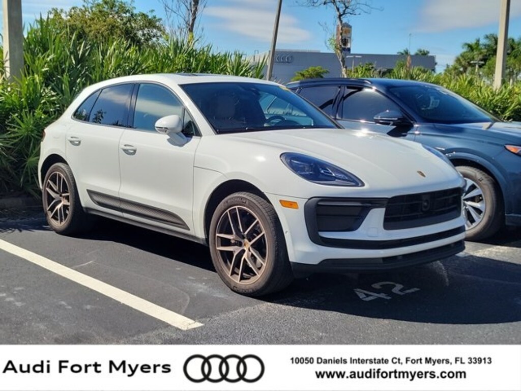 White 2023 Porsche Macan AWD 7-Speed Porsche Doppelkupplung (PDK) 2.0L I4 Turbocharged ABS brakes, Active Cruise Control, Alloy wheels, Electronic Stability Control, Front dual zone A/C, Heated door mirrors, Heated front seats, Illuminated entry, Low tire pressure warning, Navigation System, Porsche Communication Management, Power Liftgate, Remote keyless entry, Traction control.